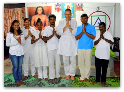 Acharya Kriyananadamayi assisted by Ahil Siva and Devaki offer Yoga and meditation classes