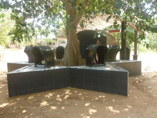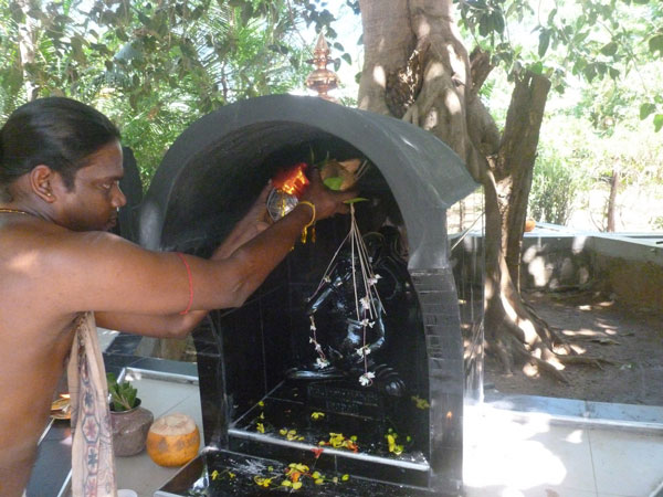 A small shrine has been erected on the very spot where Babaji sat, under a banyan tree, with the Siddhar Boganathar to attain enlightenment. It is located just inside the gate to the Theivani Amman Kovil. Pujas are conducted there daily by the priests. Devotees are encouraged to meditate and practice Yoga in front of the small shrine, which contains granite murthis of Babaji and Siddhar Boganathar and a Muruga vel.